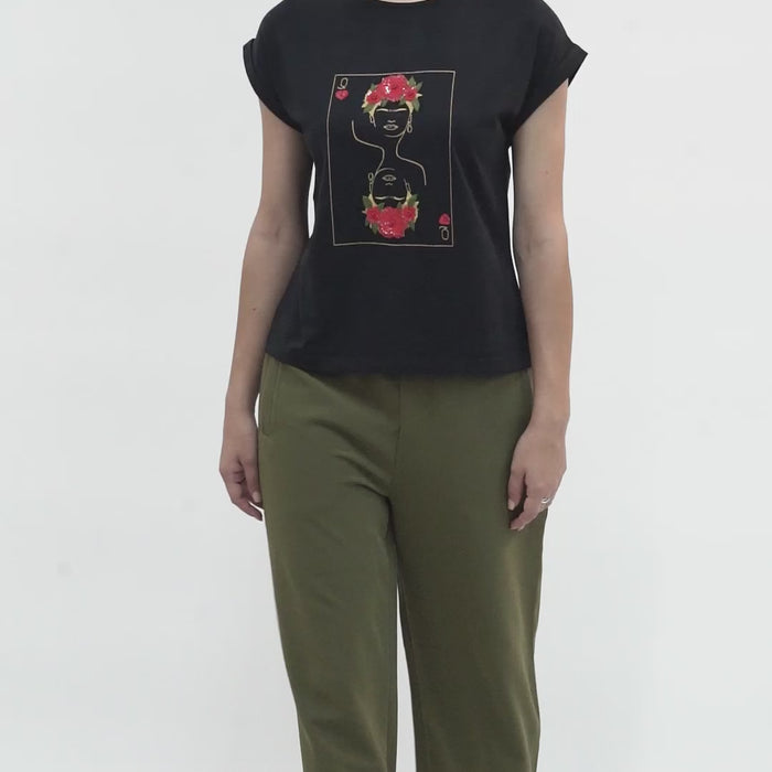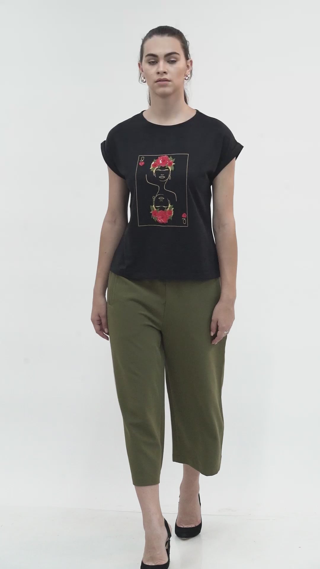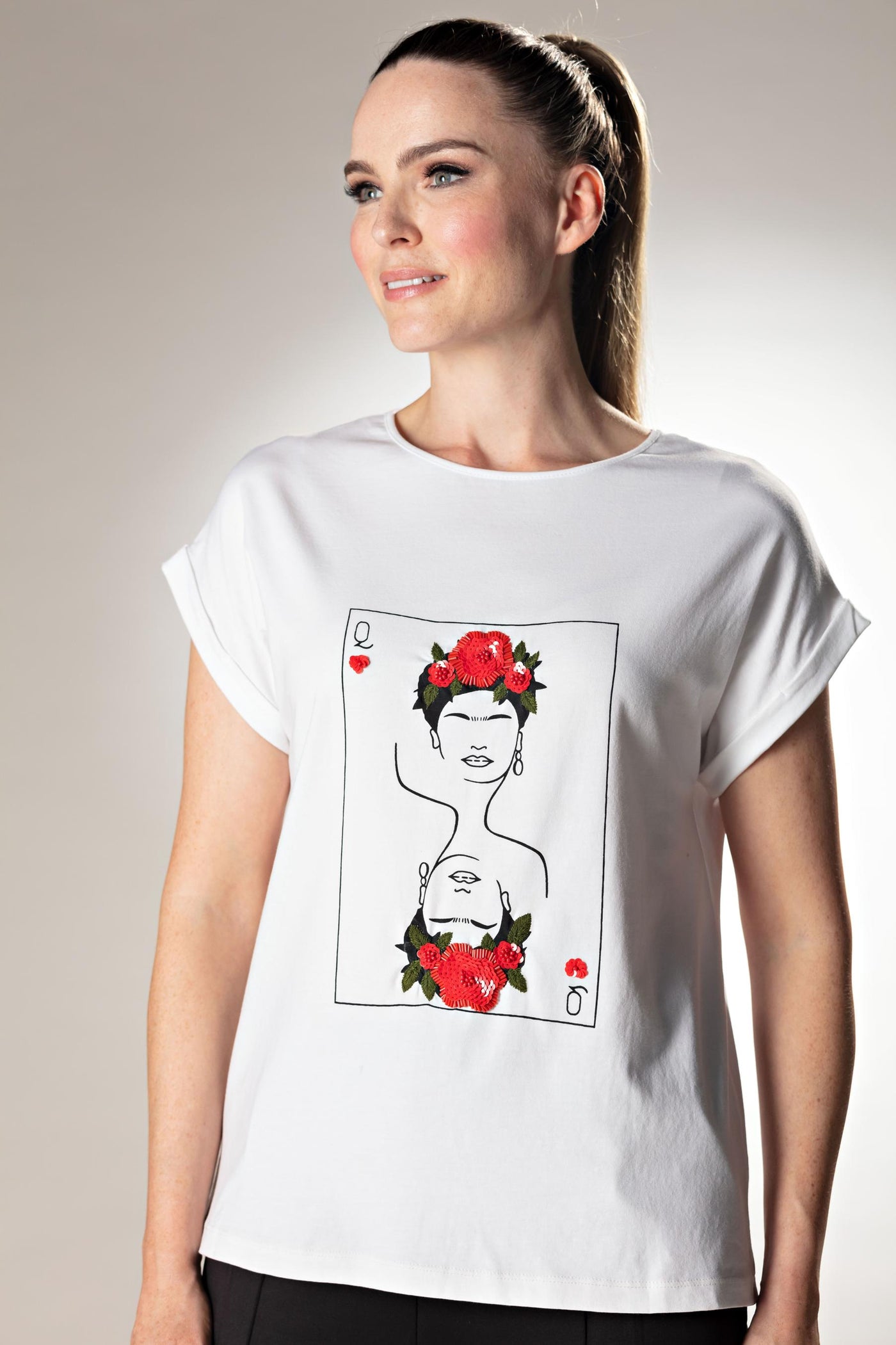 Style: Queen of Hearts -Frida Kahlo TopFabric: Cotton Lycra 180 GSmColor: Bright White Sleeve detail: Half Sleeve